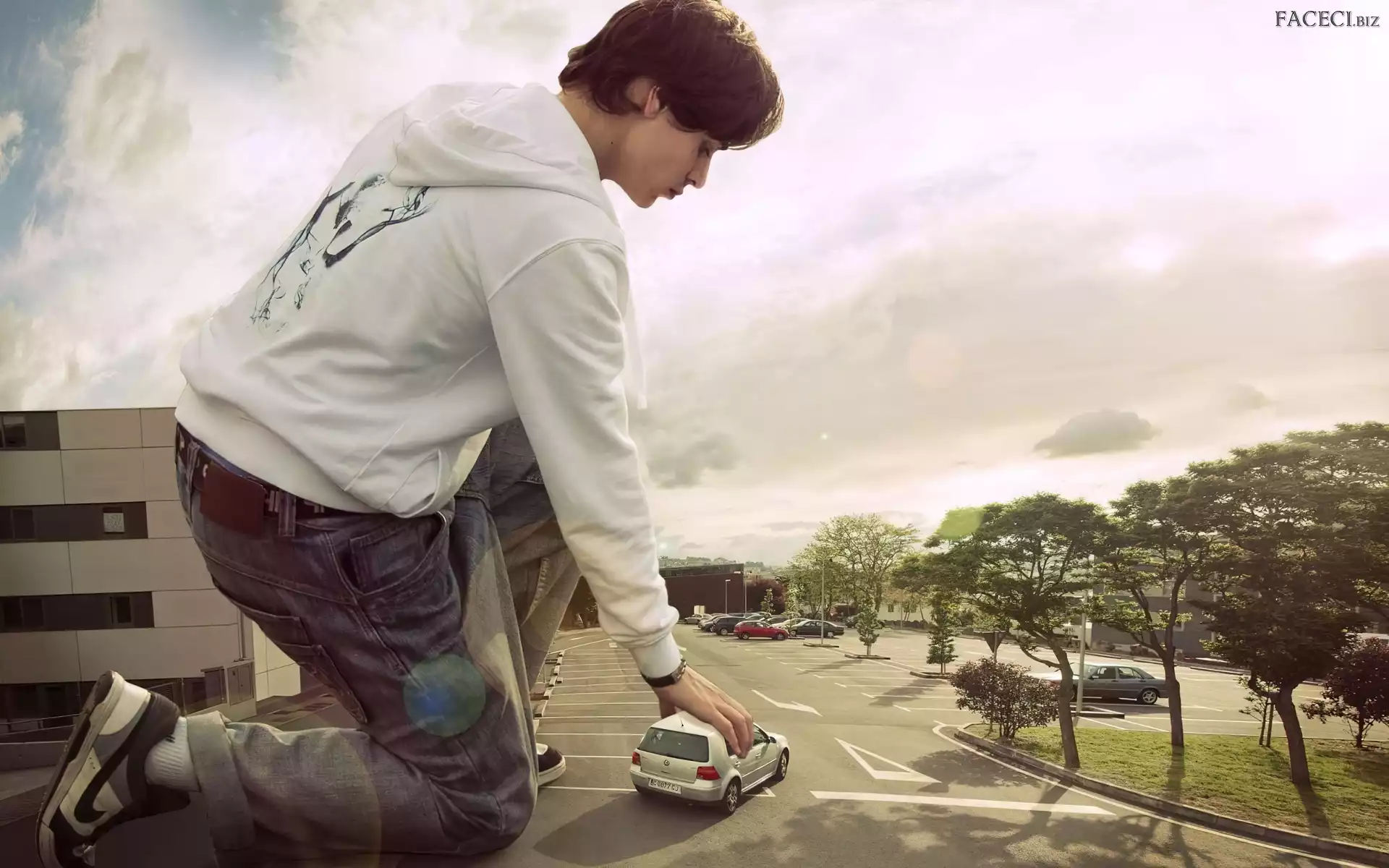 Auto, Mężczyzna, Ulica, Dom, Gigant, Drzewa - faceci.biz